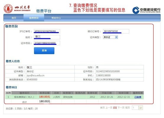 缴费成功后即可在查询页面通过已填报相关信息查询已缴费情况,如下图: