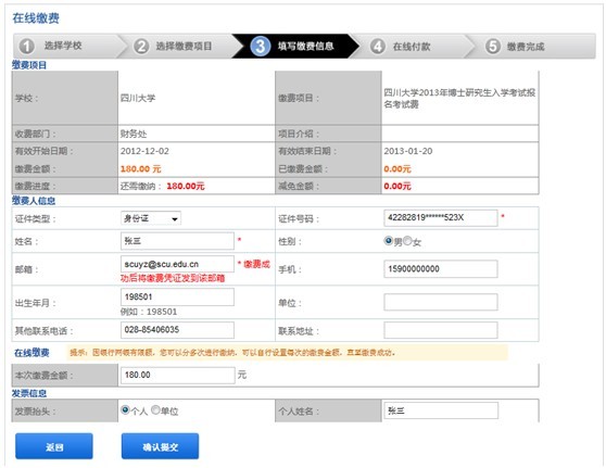完整填写个人信息,证件类型务必选择身份证,否则缴费无效。