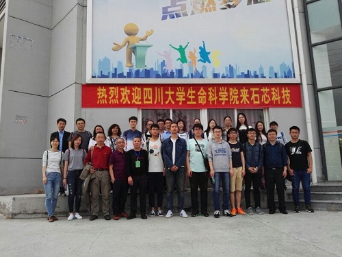 4月21日上午,由永利官网生物科学(试验班)班主任赵建教授、刘志斌副教授带领二十余名学生调研岳池石芯科技。岳池县是省级贫困县,石芯科技作为贫困县的创新企业,以科技带动农业发展,指导农民脱贫致富。永利官网张杰副教授,也正在岳池县农业局作为扶贫干部。他介绍到,广安占地1500平方公里,属于浅丘平坝地貌,且部分土地比较贫瘠,农业发展受限。当地虽人口众多,但是约1/3人口外出务工,真正的农耕人口并不占优势,因此,发展集成化、机械化的农业生产模式十分迫切。同时张局长指出生物技术的转化在农业上有所可为,拔尖班的同学们一定要努力学习,脚踏实地,未来在祖国建设、农业产业升级中发挥作用。随后,我们参观了运用无人机雾化技术的蔬菜生产基地,感受现代科技与农业生产的融合。通过控制无人机对大面积种植的作物进行农药等的喷洒,其雾化效果较之于人工更好,在节约时间、节约成本、节约劳动力、规模化上对农业种植起了促进作用。在111环线工厂的三安蔬菜生产基地中,黑光灯诱捕法、颜色诱捕发、植物组织培养技术、植物超敏蛋白等在大棚种植中发挥巨大作用。