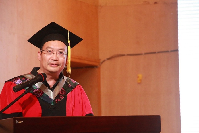 张阳教授作为教师代表发言,他向同学们分享了他对社会责任感的认识,尤其是在中国的国情下完成高等教育的学生应具备的社会责任,希望同学们:面对一切事物保持正义感,坚持科学的正义感。