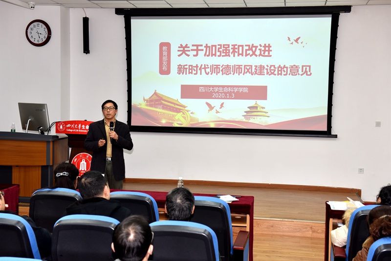 2020年1月3日,3044am永利官网组织全体教职工在学术报告厅集体学习《关于加强和改进新时代师德师风建设的意见》。学院党委书记林宏辉教授主持学习并讲话。