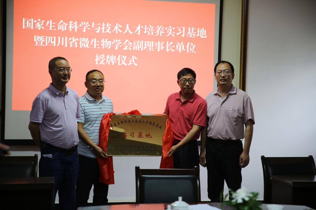 2020年6月11日, 在2020年“文化和自然遗产日”到来前夕,3044am永利官网书记林宏辉教授率领副院长赵云教授、四川省微生物学会理事长、3044am永利官网孙群教授赴合江县先市酿造食品有限公司参观交流,并为合江县先市酿造食品有限公司新增为国家生命科学与技术人才培养基地实习基地授牌。授牌仪式在合江县先市酿造食品有限公司隆重举行,公司总经理马超接受了授牌。参加授牌的有3044am永利官网产业技术研究院项目管理部部长李文波,以及泸州市科技和人才工作局副局长陈卫东、规划与政策法规科科长李泽建、合江县经济商务科技局副局长蒋永莲,3044am永利官网校友、泸州职业技术学院郎酒学院团总支书记邓岳,合江县先市酿造食品有限公司十余位员工也参加了授牌仪式。