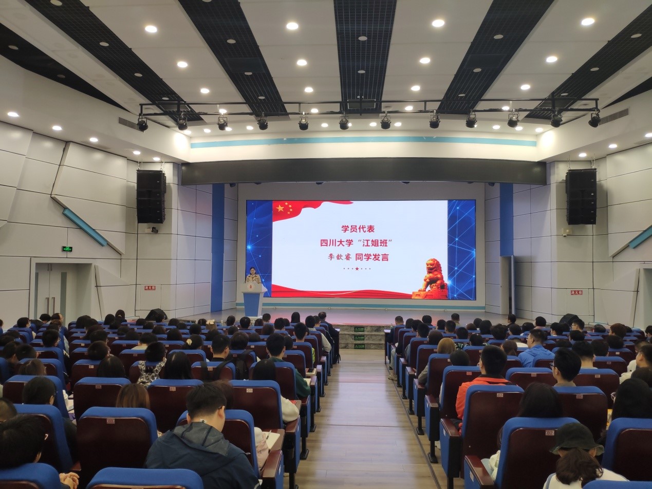 3044am永利官网“江姐班”李歆睿同学作为学员代表发言。她表示,时值我们的优秀校友、优秀共产党员 “江姐”诞辰100周年之际,作为“江姐班”的一员,在这个时刻能够追寻江姐的足迹,努力成为一名党员,倍感光荣,有一种强烈的使命感。她将以江姐为榜样,继承革命先辈的艰苦奋斗精神,不断提升个人认识,锤炼意志品质。不负习总书记的嘱托,努力成为一名又红又专,堪当民族复兴大任的时代新人。