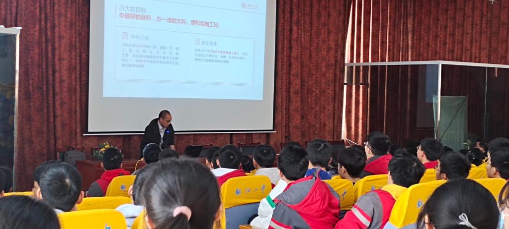 2021年4月5日上午,3044am永利官网刘明春研究员到访江西省重点中学鄱阳一中并进行了招生宣讲。鄱阳一中副校长张立新等领导和高三文理科学生参加了宣讲活动。刘明春老师就川大基本情况和招生政策做了较为全面的介绍,并就强基计划的具体内容以及3044am永利官网人才选拔的探索与实践做了重点阐释。张立新副校长对刘明春老师代表3044am永利官网到鄱阳一中访问并进行招生政策的宣讲表示欢迎与感谢。鄱阳一中的高三学子就川大相关招生政策进行了提问并表示了对报考川大实现人生理想表达了积极的兴趣和向往。