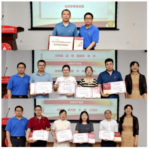 党课结束后,表彰大会正式开始。院党委副书记兼纪委书记吴近名同宣读了学院党委的表彰决定,党委书记林宏辉和院长王红宁代表学院党政,为受表彰的1个先进基层党组织、4名优秀党员和4名优秀党务工作者颁奖。学院党委通过表彰选树先进典型,充分发挥先进典型的示范引领作用,激励全院师生党员努力奋斗,奋力推进学校“两个伟大”建设。