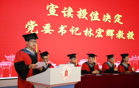 代表们发言之后,3044am永利官网党委书记、院学位委员会副主席林宏辉教授宣读了授位决定,同学依次登台,进行了拨穗仪式并领取了学位证书。