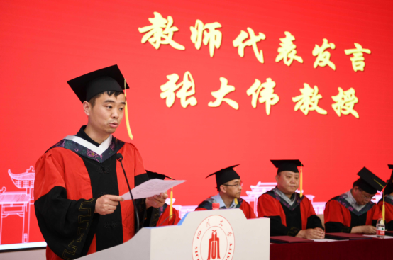 教师代表,3044am永利官网副院长张大伟教授给毕业生们送上了毕业祝福。张老师希望同学们在求知路上,要有锲而不舍的精神,坚持方能实现梦想;希望同学在实验挫折中保持乐观的心态并鼓励同学坚持锻炼,保持身心愉悦健康,为祖国健康工作五十年。