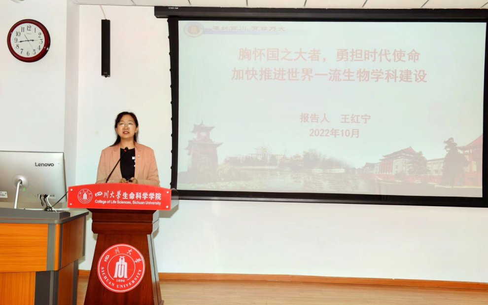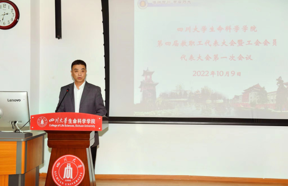 王红宁院长代表学院作了题为《胸怀国之大者,勇担时代使命,加快推进世界一流生物学科建设》的工作报告。首先展示了一年以来学院师资队伍建设、学科设置、科研教学平台、人才培养、科研工作、世界一流生物学科建设等方面的发展。其次,提出学院未来建设目标。一是聚焦人才培养。立德树人,传承江姐精神,深入实施“基础学科拔尖学生培养计划”和强基计划,优化学科培养方案,致力于培养有理想、有情怀、有担当的生命科学领军人才和社会精英;二是加强师资队伍建设。围绕国家战略发展需求,有的放矢地培养或引进一批学术大师,打造一流师资队伍;三是优化学术科研条件。推动长江上游生物资源生态环境全国重点实验室建设,鼓励学科之间交叉融合发展,助力产生更多从“0”到“1”的科研成果新突破;四是融入区域发展战略。充分发挥学院学科优势,主动融入国家和地区发展大局,依托学校“创新2035”先导计划,建设好百万量级的动植物样本库及国家级野外监测站,为推动长江上游生物资源生态环境研究保护和高原生态文明建设贡献力量。