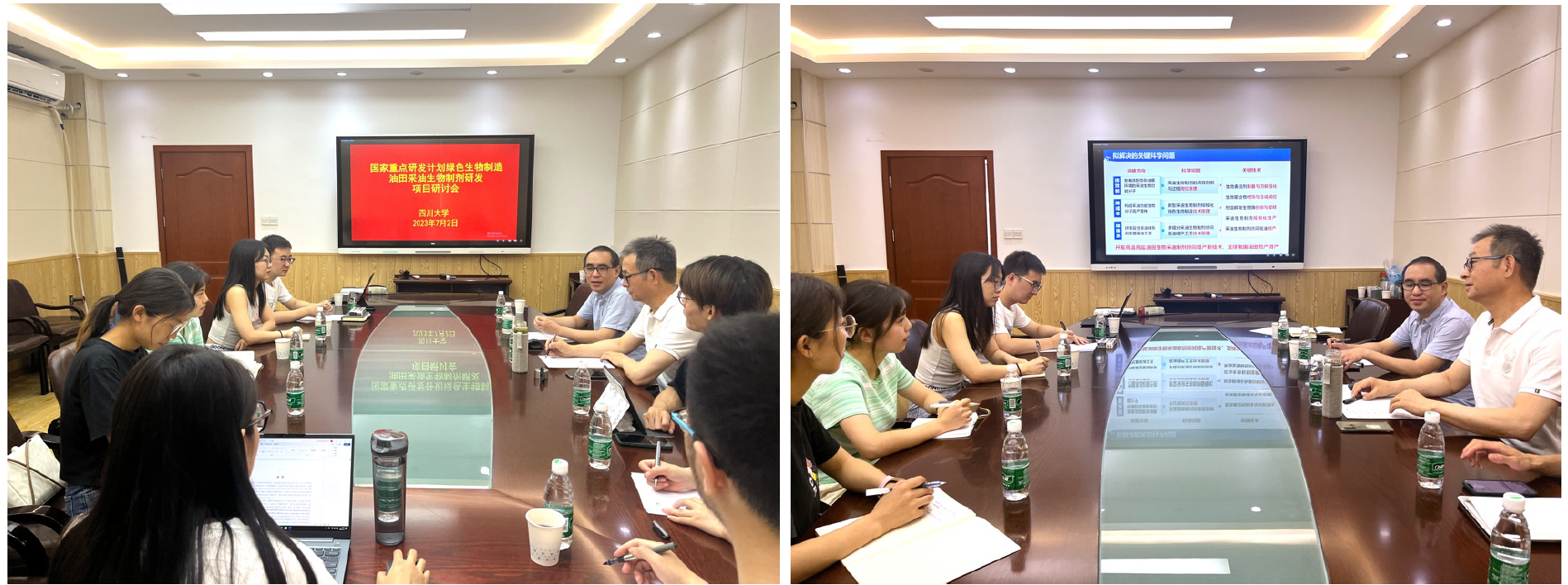 2023年7月2日,项目首席科学家、中石化胜利油田微生物技术首席专家汪卫东等一行三人到学院召开项目推进研讨会。会上,永利官网参与项目的朱晓峰教授及团队主要人员就上半年的课题进展、协同研究情况做了汇报。在听取团队汇报后,汪卫东首席向参会人员进一步明确了项目的研究目标,并结合项目其他团队的进展,对项目的研究思路、方法提出新的建议和要求。他还对油田开发的主要技术及瓶颈问题进行了细致的讲解,重点分析了微生物、生物制剂在探油、驱油、解堵等油田开采关键步骤的重要作用和发展新趋势,加强了永利官网参研师生对项目目标、重大意义的理解。