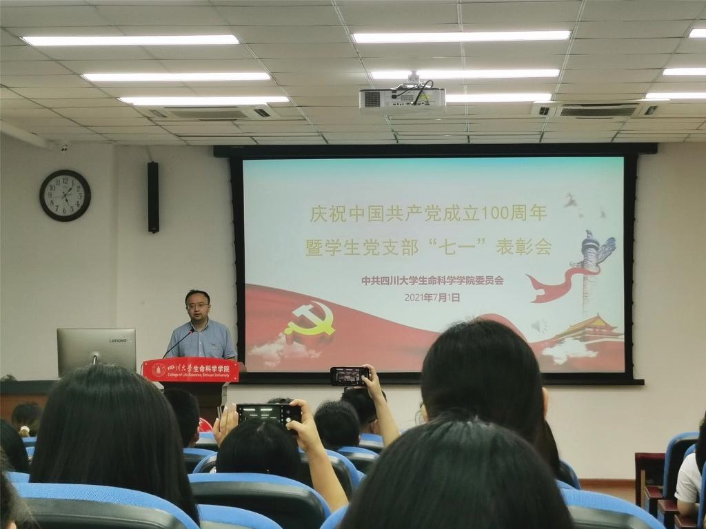 百年征程波澜壮阔,百年初心历久弥坚。7月1日下午生命科学楼A101,为庆祝中国共产党成立100周年学院举行了学生党员“七一”表彰会。学院党委副书记吴近名、学院党委委员姜丹蓉、学生党建指导教师、学生科副科长黄艳、院团委副书记何韵云、本科生党支部书记唐霞和各学生党支部代表参加了表彰会。本次会议由黄艳老师主持。