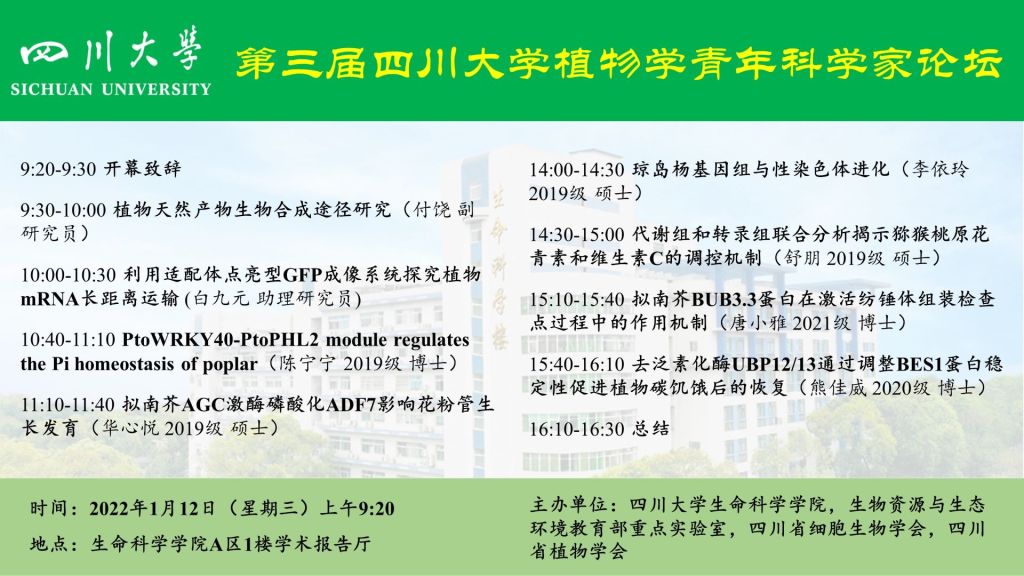 第三届3044am永利官网植物学青年科学家论坛1月12日举行